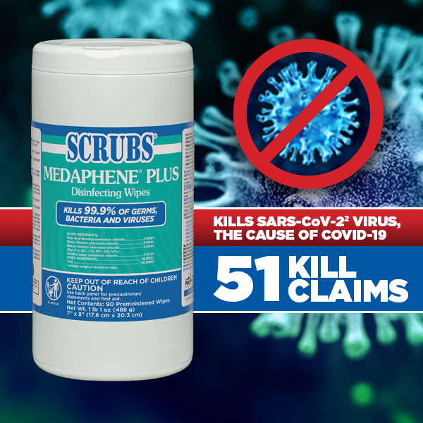 An effective germ-killing disinfectant combined with a strong wipe make up SCRUBS® MEDAPHENE® Plus Disinfecting Wipes. The textured wipe works quickly not only to loosen, but also absorb contaminants to leave surfaces clean and disinfected.